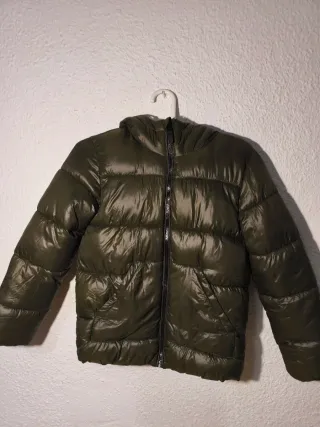 Vendo chaqueta tipo plumífero/acolchada de la línea Primark Cares en color verde oliva. Es muy ligera pero abriga un montón, perfecta para el día a día o el colegio. Talla: 9-10 años (140 cm). Estado: En muy buenas condiciones, bien cuidada. Detalles: Tiene capucha fija, bolsillos laterales y cierre de cremallera frontal que funciona perfectamente. Color: Verde militar/oliva con un acabado satinado muy chulo. Hago envíos por Wallapop o entrega en mano