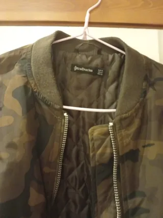 Chaqueta estilo bomber de Zara con forro interior en contraste. - Cierre de cremallera frontal.No cierra la cremallera habría que arreglarla - Bolsillos laterales. - Bolsillo con cremallera en la manga. - Puños y bajo elásticos. Chaqueta cómoda y fácil de combinar para ir a cenar o salir a dar una vuelta ,elegante y juvenil