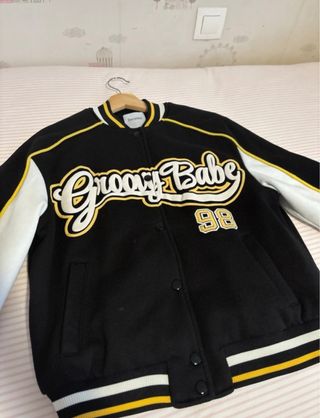 Chaqueta Bershka Negra con Detalles Amarillos
