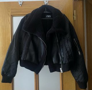 Chaqueta bomber efecto piel parte delantera y trasera, interior de borreguillo, bolsillos laterales y de cremallera en una manga, Zara XS