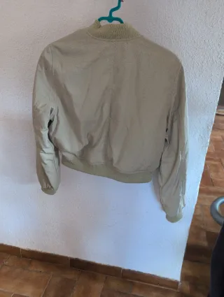 Chaqueta estilo bomber en color verde militar. Talla 34, solo un uso