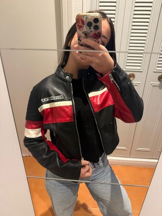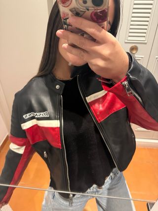Chaqueta Bershka Negra y Roja Talla S