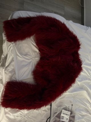 Chaqueta de pelo sintético de la marca Shein. Es suave y llamativa. - Diseño de pelo largo. - Color rojo intenso.