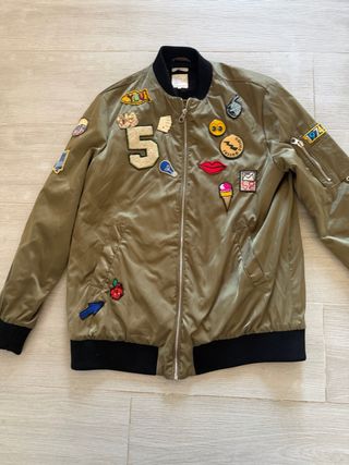 Bomber estilo buedeos de Zara. - Cierre de cremallera. - Bolsillos delanteros con botón. - Puños y bajo elásticos.