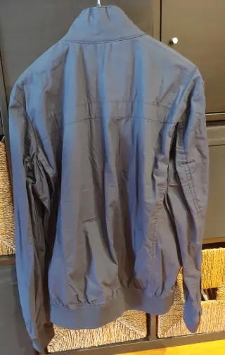 Cazadora estilo Harrington para hombre en color azul marino. Se caracteriza por su diseño ligero, cierre de cremallera frontal y un cuello con botones que le otorga un aire clásico y versátil Talla: L Casi nueva, puesto solo en dos ocasiones Precio original 129€