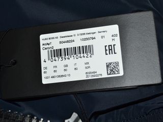 El articulo es original, y se han comprado en la tienda de la marca o distribuidor autorizado y esta sin usar con etiquetas.Esta peritado por un experto como origina y si lo desea se le puede indicar donde verlo. Chaqueta bomber en tejido técnico azul oscuro, con dos bolsillos y un bolsillo en el hombro, logotipo y bolsillo con cremallera. Está rellena de fibra de poliamida para el frío. En las fotografías estás todos los detalles que es original. Precio tienda: 450 euros 60 EU / 50R US UK equivalente aproximadamente a una 4XL europea (A) 55 cm de hombro a hombro, (B) 68 cm de axila a axila, (C) 70 cm de largo y (D) 71 cm de manga
