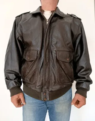 Bomber piloto aviador nueva cuero auténtico Aviatrix talla XL. Medidas indicadas. Más prendas de cuero en mi perfil. Nueva sin estrenar, solamente probada, por no ser de mi talla. Cuero vacuno de excelente calidad, ligeramente rígido. Emblemas cosidos. Color negro intenso y brillante. La etiqueta indica talla L, pero es más bien una XL, posiblemente sirva también para XXL. El modelo mide 1'74 y pesa 81 kgs. Medidas indicadas en las fotos finales. Preguntar cualquier información sin compromiso. #cuir #cuirveritable #leather #realleather #cuero #cueroautentico #echtleder #echtesleder #pelle #verapelle #pellevera #blousoncuir #lerenja