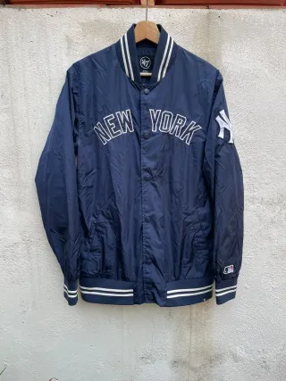 Chaqueta ligera estilo universitario de los New York Yankees. - Diseño clásico con cuello y puños de canalé. - Cierre de botones a presión. - Detalle del logo 47 en el cuello y en la manga. - Inscripción New York en el pecho. - Nueva. MLB NFL NBA Beisbolera Americana USA Nueva York Los Angeles Dodgers