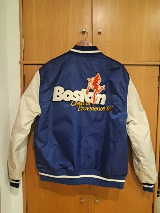 Chaqueta ligera universitaria bomber vintage años 90 de los Nebraska Cornhuskers de fútbol americano universitario. - Cierre de botones a presión. - Puños y cuello con detalles de rayas blancas. - Parche bordado en el pecho. - Estado: nueva - Made in USA - Talla: pone M pero es una S - Medidas: 63cm largo x 57cm ancho # NFL NBA NHL Starter Mitchell Ness Nueva York Green Bay NcAA Bulldogs Campri Raiders 49ers Mighty Ducks retro hockey beisbol football