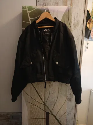 Chaqueta bomber de Zara con un diseño moderno y elegante. - Cremallera frontal. - Puños y bajo elásticos. - Bolsillos laterales. -Nueva, puesta solo una vez.