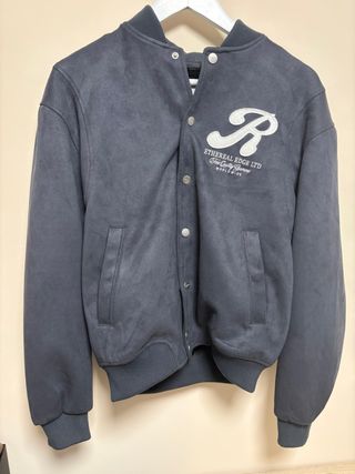 Chaqueta estilo bomber con un diseño moderno y detalles deportivos. - Cuello y puños con rayas. - Cierre de botones a presión. - Bolsillos laterales. - Insignia bordada en el pecho. Acepto ofertas