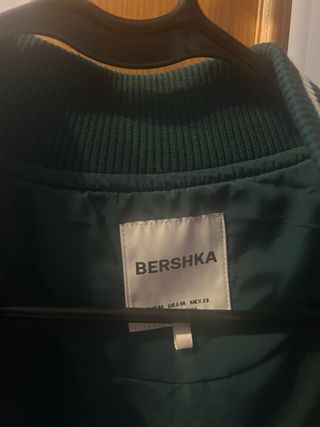Chaqueta estilo bomber con detalles deportivos. Es la talla M, pero como si fuera una S. - Diseño con franjas blancas en las mangas. - Cuello y puños elásticos. - Cierre de cremallera frontal. - Bolsillo con cremallera en la manga.