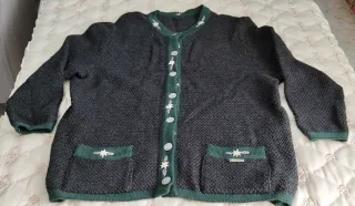 Chaqueta gris de punto com bordado vintage
