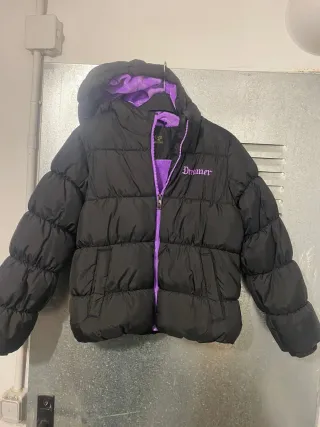 Chaqueta acolchada con capucha y detalles en contraste. - Diseño acolchado. - Forro interior de color morado. - Cremallera frontal. - Bordado Dreamer en el pecho.