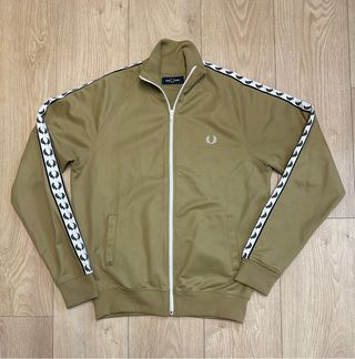 Chaqueta deportiva Fred Perry en color beige con detalles de rayas en las mangas. - Diseño con cuello alto. - Cierre de cremallera frontal. - Logo de Fred Perry bordado en el pecho.