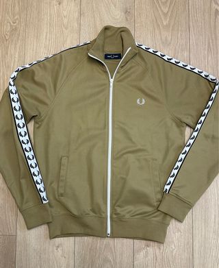 Preciosa chaqueta deportiva de Fred Perry. Está en excelentes condiciones y luce impecable. - Tiene una cremallera frontal. - Presenta detalles con las típicas bandas de la marca en los laterales. - El logo de la corona de laurel bordado en el pecho le da un toque clásico.