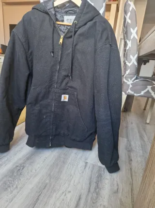 Chaqueta Carhartt negra talla M, ideal para el invierno. Está en buen estado y es perfecta para mantenerte abrigado. - Forro interior suave. - Cierre de cremallera y botones. - Bolsillos funcionales.