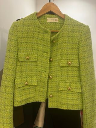 Chaqueta Tweed Mango Verde Talla S