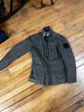 Chaqueta estilo militar de la marca Chevignon. - Color verde militar. - Cierre de cremallera y botones. - Múltiples bolsillos frontales. - Cordones ajustables en cintura.