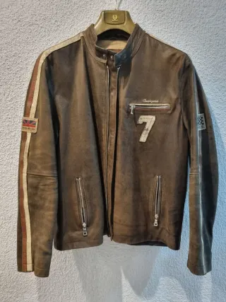 Chaqueta de piel de la marca Chevignon. - Diseño tipo motero. - Número 7 bordado en la parte frontal. - Detalles de parches y rayas en las mangas. - Cremalleras metálicas.