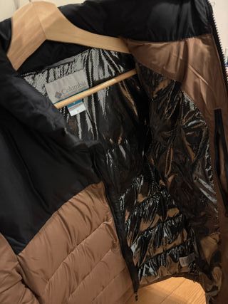 Chaqueta acolchada de la marca Columbia con un diseño de bloques de color. - Mangas en tono marrón oscuro. - Cuerpo principal en rosa y blanco roto. - Cuello alto. - Cremallera frontal. Tiene una capa exterior deperlante al agua y una confección con aislamiento para mantenerte abrigada y seca todo el invierno Me costó 120€ y me lo he puesto 4 veces,está prácticamente nuevo. Precio no negociable porque está nuevo