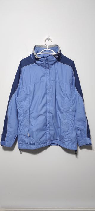 Chaqueta Columbia con un diseño moderno en tonos azules y grises. - Cierre de cremallera frontal. - Bolsillos con cremallera. - Capucha ajustable. - Forro polar interior intercambiable. - Gorro plegable.
