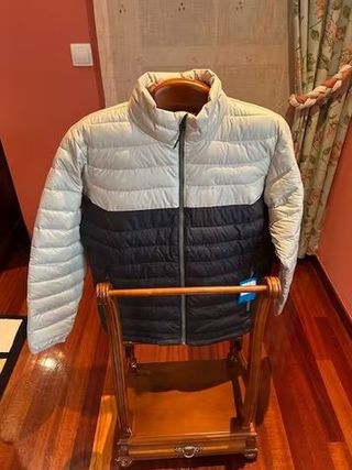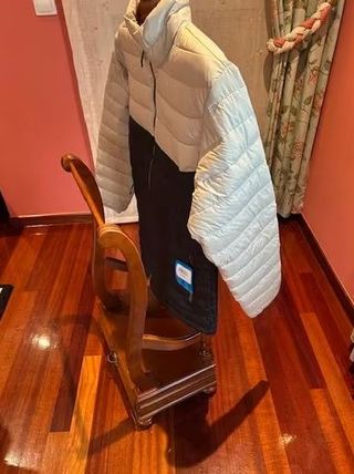 Vendo: Chaqueta Columbia Edredón con capucha que se guarda talla L de invierno y de abrigo, color crema blanco y otro crema más oscuro casi gris en un estado excelente TODO SEGUN FOTOS ADJUNTAS
