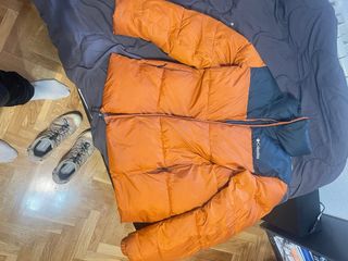 Chaqueta acolchada de la marca Columbia, ideal para mantenerte abrigado. Usado un par de veces el año pasado, lo vendo por que me han regalo uno nuevo. - Diseño bicolor en naranja y negro. - Cierre de cremallera frontal. Plumifero. Plumas. Nieve. Frio. Invierno