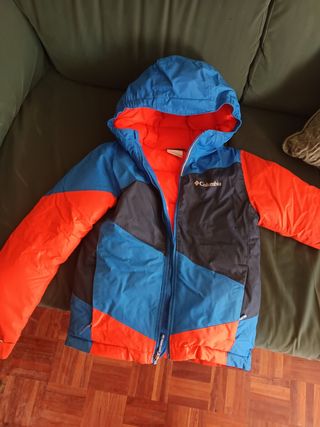 Chaqueta infantil Columbia con un diseño moderno y llamativo. - Capucha integrada. - Cierre de cremallera frontal. - Paneles de color en contraste.