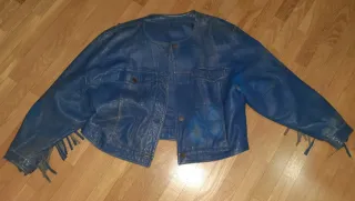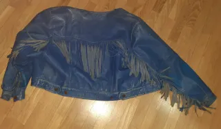 Cazadora Piel Vintage Azul Flecos
