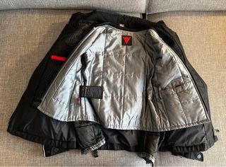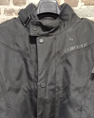 Chaqueta de moto Dainese en color negro. Diseño completo y funcional. - Cierre frontal con cremallera y botones. - Múltiples bolsillos exteriores e interiores. - Chaqueta de moto - Ajustes en cintura y puños. - Paneles de ventilación. - Protección en los hombros y codos - Protector de espalda incluido - Chaqueta interior y exterior - Original Precio negociable
