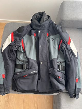 Chaqueta de moto Dainese Carve Master 3. - Chaqueta de mas 500€ nueva. - Nueva a estrenar. - Talla 58. - Fabricada con materiales de alta calidad. - Diseño moderno y funcional. - Incorpora tecnología GORE-TEX para máxima protección. - Detalles en color rojo y gris.