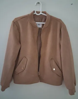 Cazadora de ante mujer. T-M. Con cierre de cremallera plateada y bolsillos laterales. En muy buen estado. Usada 3 veces.
