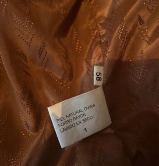 Chaqueta de ante de la marca Serra. - Piel natural ovina. - Forro de rayón. - Limpieza en seco.