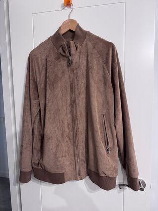 Chaqueta bomber de Stradivarius, nueva con etiquetas. - Material exterior tipo ante. - Forro interior satinado. - Puños y cuello elásticos.