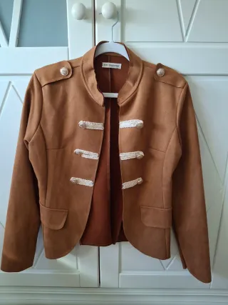 Chaqueta de ante de la marca Zara. - Diseño clásico. - Cierre de botones. - Bolsillos en el pecho. - Forro interior acolchado.