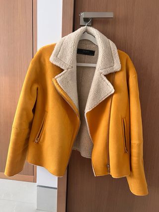 Cazadora de Zara con un diseño moderno y cálido. - Exterior efecto ante. - Forro interior de borreguito. - Cuello solapa. - Cierre cremallera. - Bolsillos laterales con cremallera.