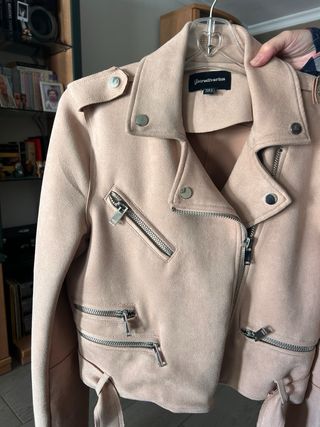 Cazadora Biker Ante Stradivarius Rosa Talla XS