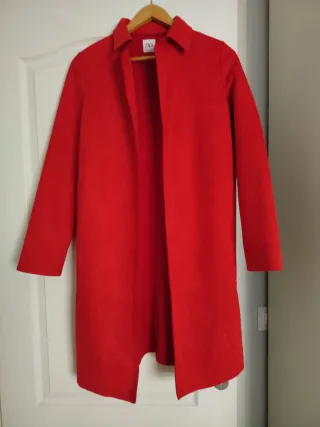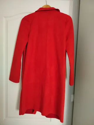 Chaqueta larga de ante en color rojo. - Diseño de corte recto. - Cuello camisero. - Bolsillos laterales