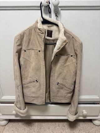 Chaqueta de ante en color beige de Stradivarius, esta usada, pero con un aspecto bueno. Mira las imágenes para más detalles. Talla S Mira más prendas en mi perfil. Cualquier duda pregunta sin compromiso