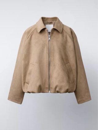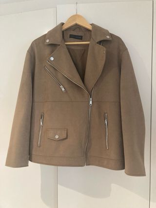 Cazadora de ante en color marrón. Un básico de Zara. - Cierre de cremallera. - Diseño tipo biker.