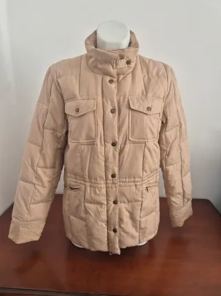 Chaqueta acolchada en elegante color camel, fácil de combinar con cualquier prenda. Presenta un diseño moderno y funcional con cremallera y botones. Relleno de plumas, para no pasar frío ante bajas temperaturas. - Dos bolsillos superiores con solapa. - Dos bolsillos laterales con cremallera. - Cuello alto.