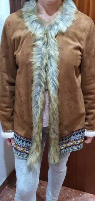 Chaqueta ante en color camel en talla S/M, prácticamente a estrenar (una sola puesta). Interior de borreguito, muy abrigada.