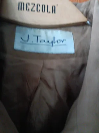 Chaqueta de ante de la marca Mulaya. Talla L, aunque no da mucha talla, ver medidas. Es de color marrón camel o mostaza y tiene un corte estilo blazer. Con manga estilo francesa que se recoge al codo con un botón. Composición: 95% poliéster, 5% elastano. Con dos bolsillos laterales. Medidas: 40 cm de hombro, 47cm de pecho y 77cm de largo total. Sin botones, queda abierta por delante. Manga tres cuartos. Cierre delantero abierto. Dos bolsillos laterales.