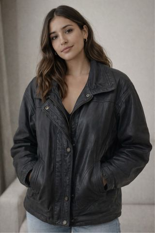Chaqueta de cuero estilo vintage con un diseño desgastado y único. - Material: Cuero - Color: Marrón con efecto desgastado - Estilo: Bomber - Cierre: Cremallera y botones a presión - Bolsillos: Dos bolsillos frontales con solapa y botón