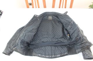 Chaqueta de cuero negra, talla XL (58). Un clásico atemporal. - Material: Cuero genuino. - Cierre de cremallera frontal. - Puños y cintura elásticos.