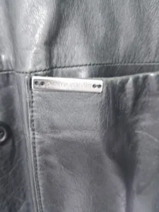 Levita larga de cuero negro. Muy buen estado. Talla 40, pero es una S-M. 100% napa de cordero. El forro es de poliester Ojo!! El cinturón tiene alguna imperfección, y los botones parecen descolgados (como se puede apreciar en las fotos). El resto de la chaqueta está perfecta