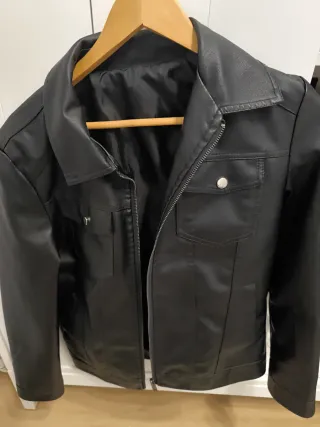 Chaqueta de cuero sintético con un diseño moderno. - Cierre de cremallera frontal. - Cuello estilo camisero. - Puños y bajo elásticos. ⚠️ Contiene marcas de uso en la zona del Cuello pero se puede utilizar perfectamente.
