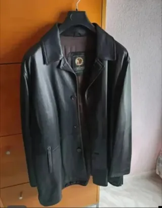 Chaquetón de cuero para hombre de la marca Forester. Está en muy buen estado y tiene un diseño elegante y atemporal. - Material: Cuero 100% - Cierre: Botones.