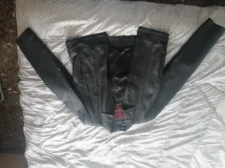 Esta cazadora biker negra, hecha de un cuero sintético flexible, es una nueva prenda atemporal para tu armario. La cremallera inclinada, el pespunte decorativo y el corte ligeramente entallado proporcionan una silueta potente y favorecedora. Llévala de manera informal con vaqueros o como capa extra sobre un vestido para un mayor contraste. - precio original 54,99€ -no la he llegado a usar nunca